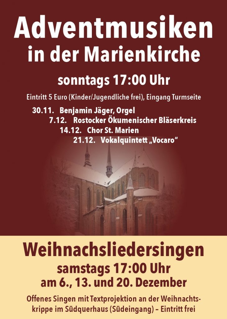 Adventmusiken an den vier Sonntagen um 17 Uhr, Eintritt EUR 5,-, Eingang Turmseite